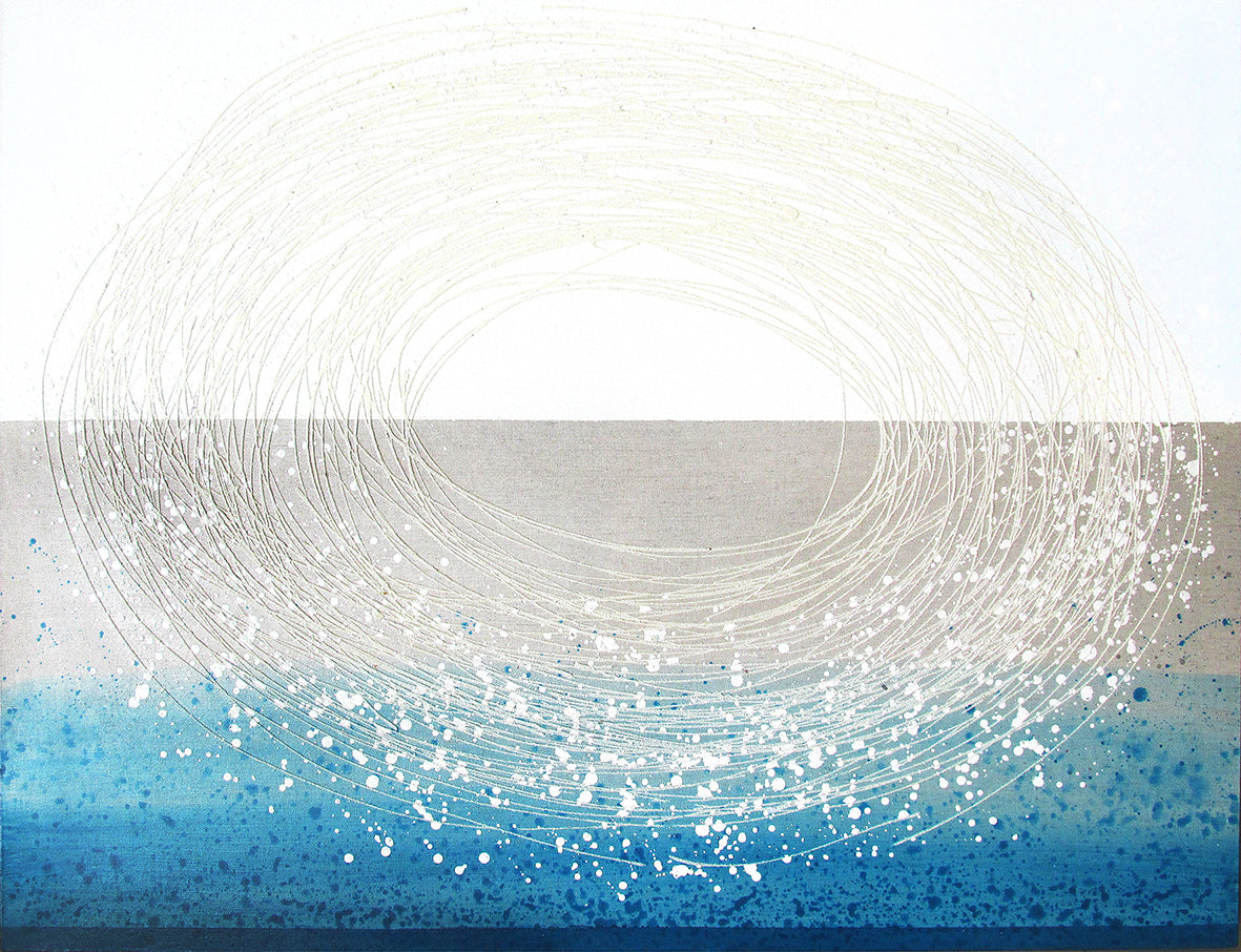 Autors: Dina Ābele, "Klajums, kur kāds ar mani runā" akrils uz audekla, izmērs: 100 x 130 cm, 2019. gads.