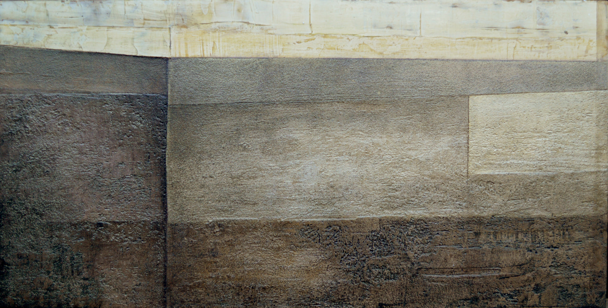 Autors: Visvaldis Asaris, "Zeme”, autora tehnika uz koka audekla, izmērs: 40 x 70 cm, 2021. gads.