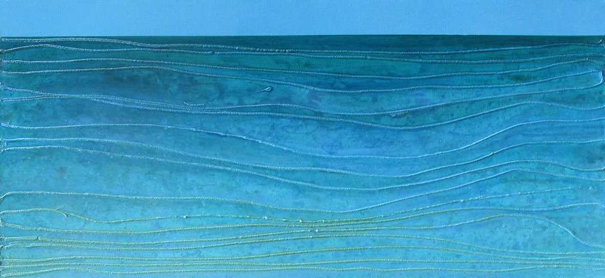 Autors: Dina Ābele, "Tālums, kas ar mani runā", akrils uz audekla, izmērs: 60 x 130 cm, 2022. gads.