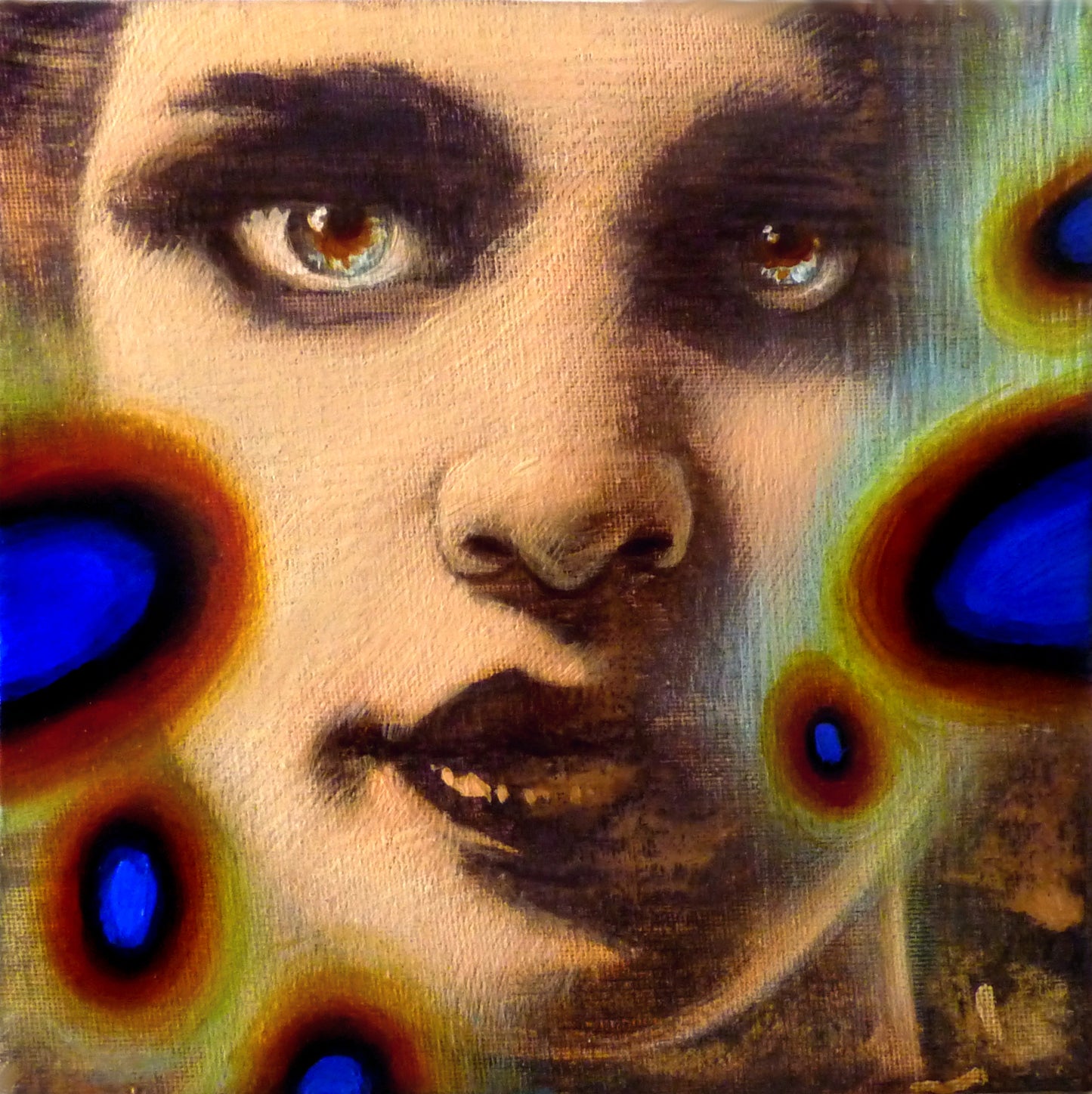 Autors: Kristine Kvitka, "Sapņotāja 16", eļļa uz audekla, izmērs: 20 x 20 cm, 2022. gads.