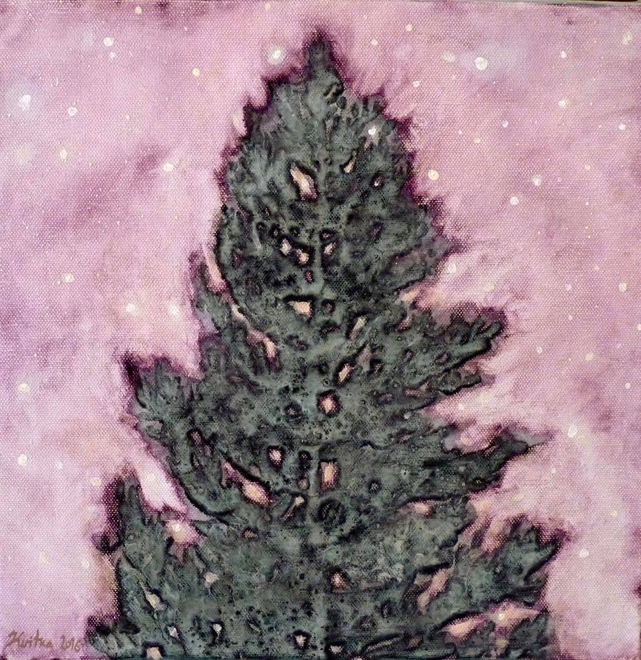 Autors: Kristīne Kvitka, "Lielā egle", eļļa uz audekla, izmērs: 30 x 30 cm, 2016. gads.