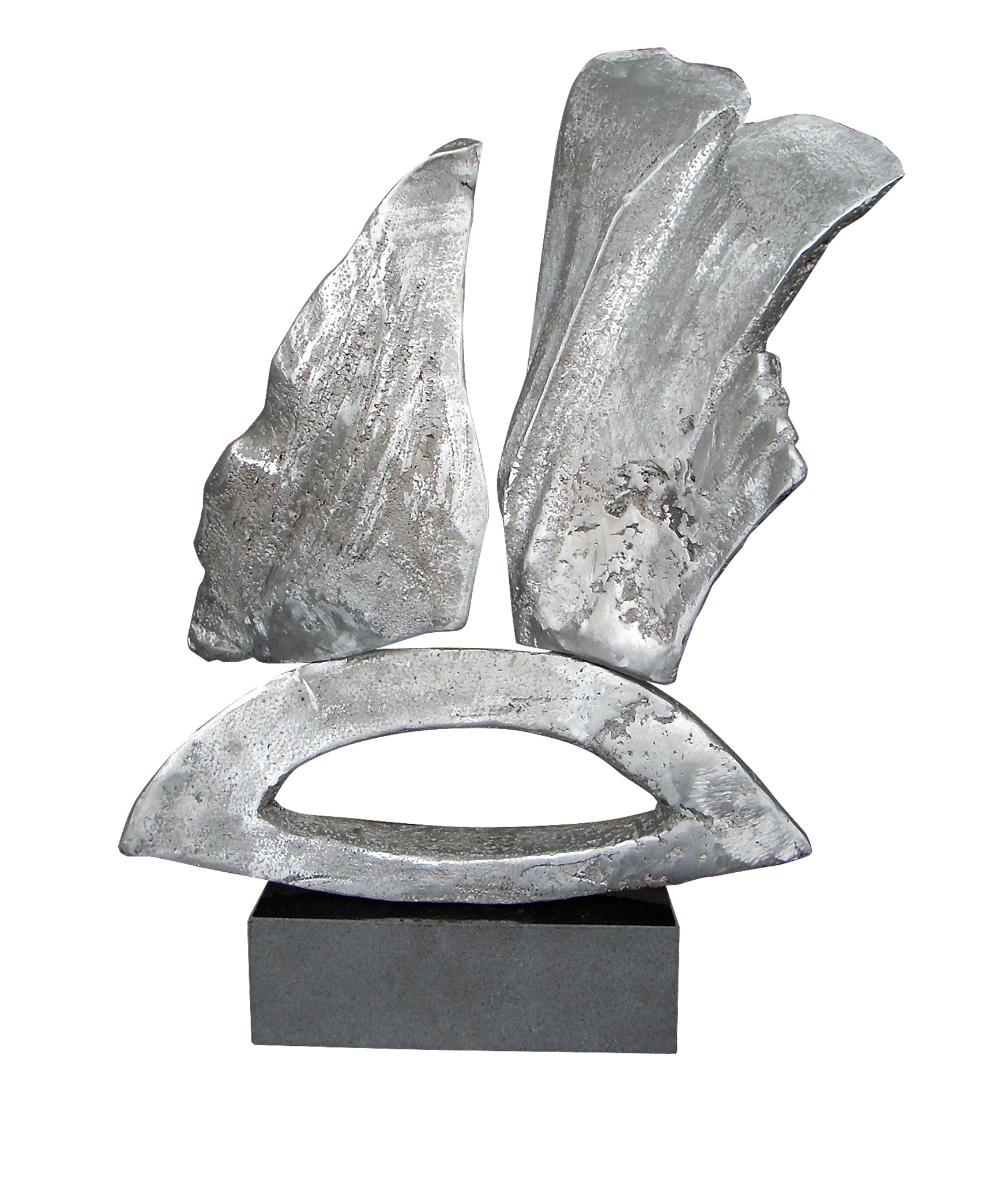 Author: Vija Dzinatre, "Dialogue", aluminum, granite, size: 60 x 42 x 42 cm, year of 2014.