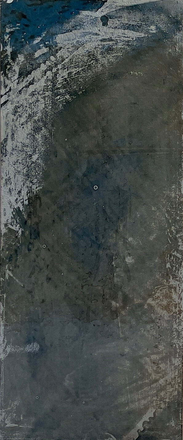 Autors: Vineta Groza, "Interpretācija", kausēts spogulis, viena daļa no triptiha, izmērs: 90 x 38 cm, 2024. gads.