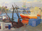 Autors: Neonilla Medvedeva, "Sarkanais kuģis Liepājas ostā", eļļa uz audekla, izmērs: 49 x 64 cm, 2020. gads.