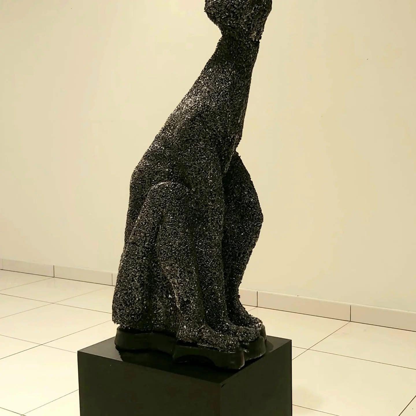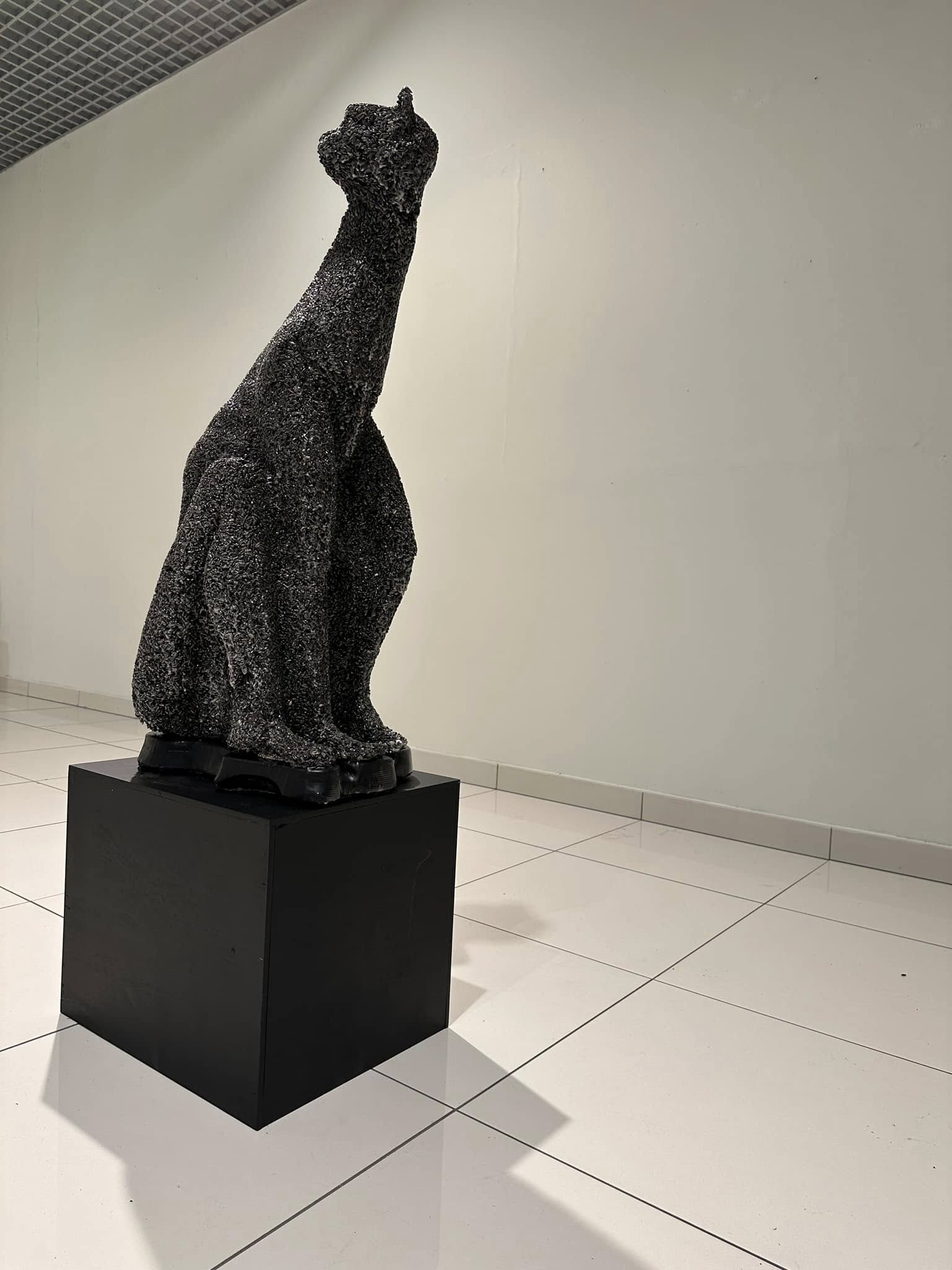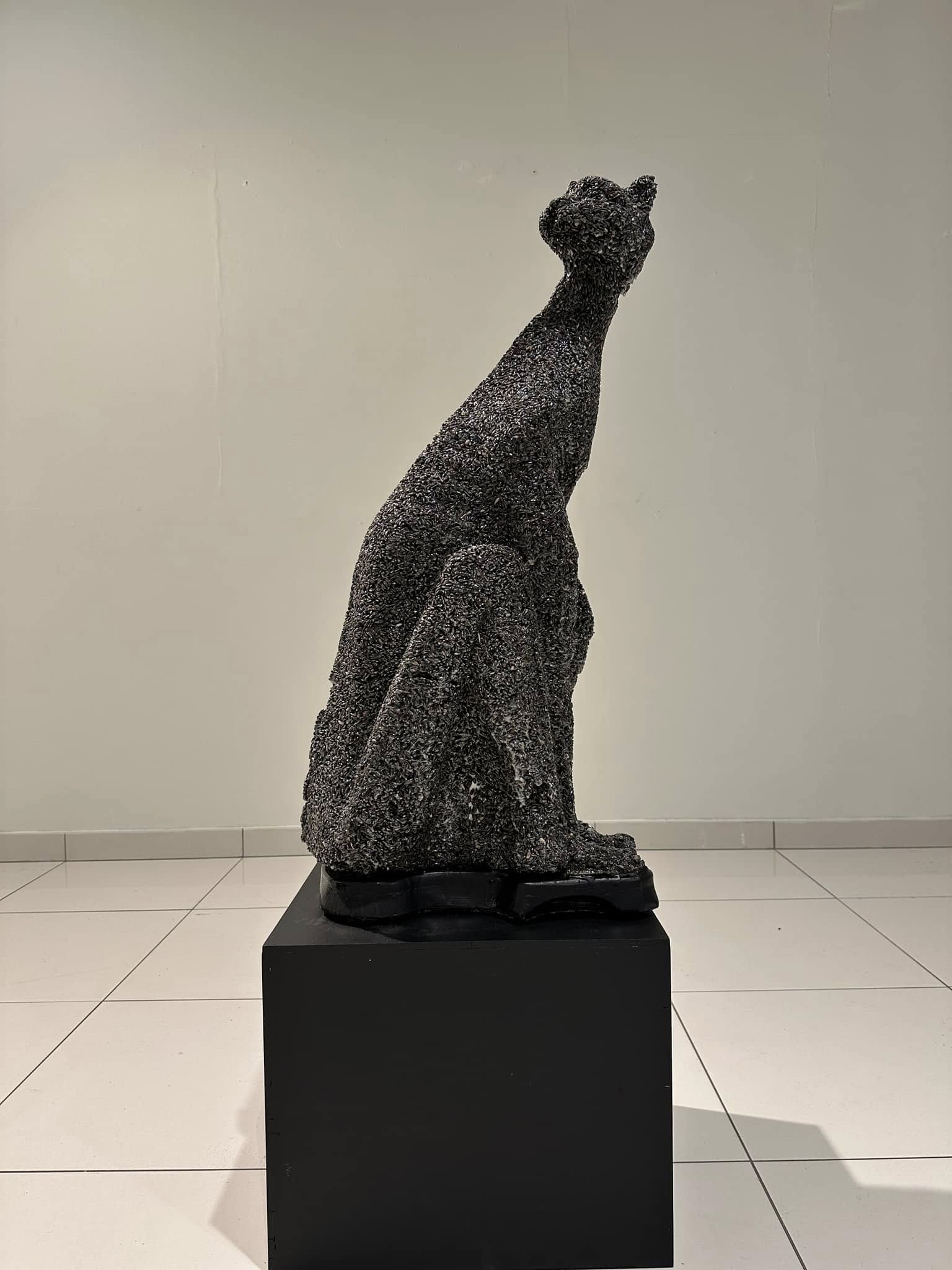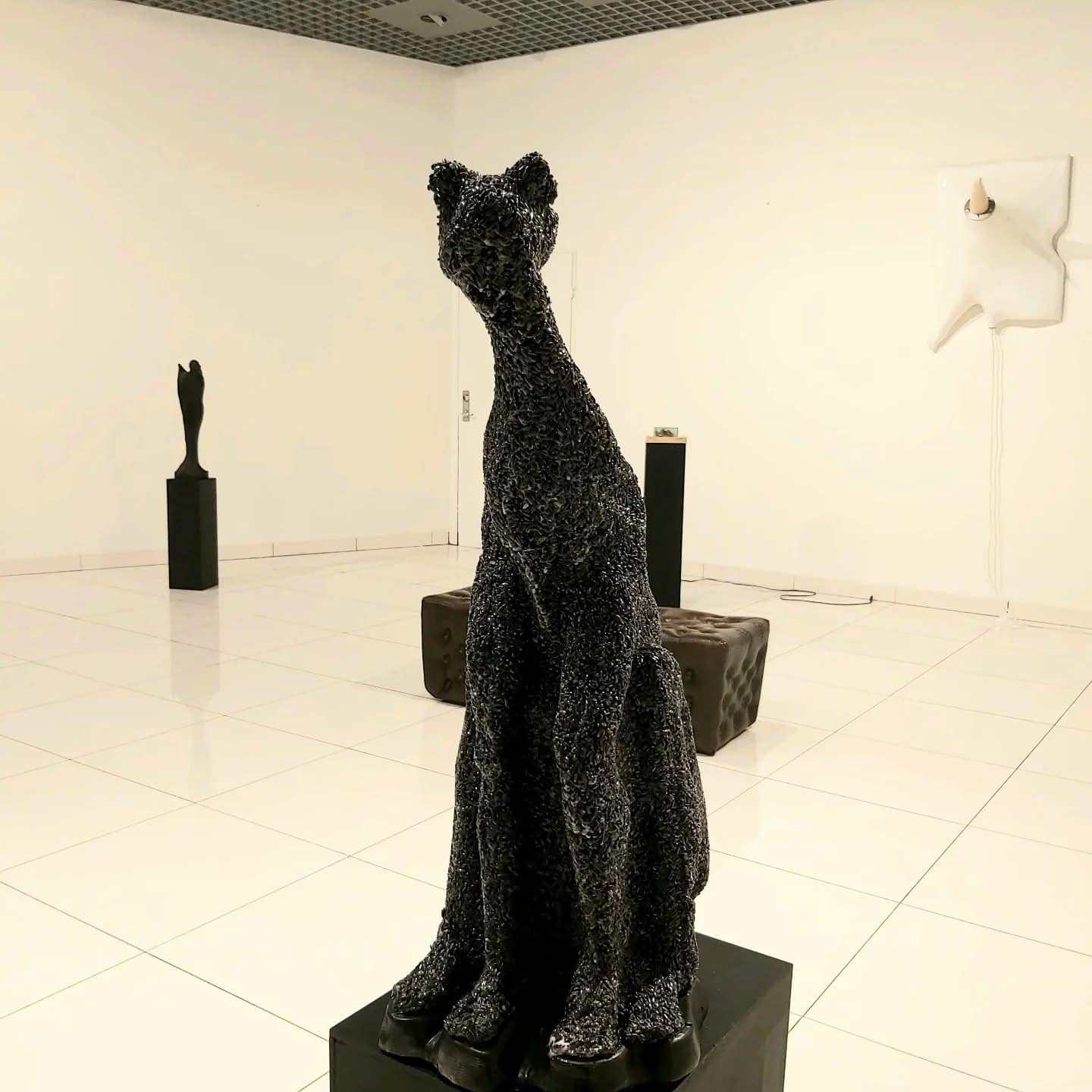 Автор: Армандс Вецванагс, "Подсолнуховый кот", семечки подсолнечника, полиуретановая смола, размер: 110 х 40 х 50 cм, год 2022.