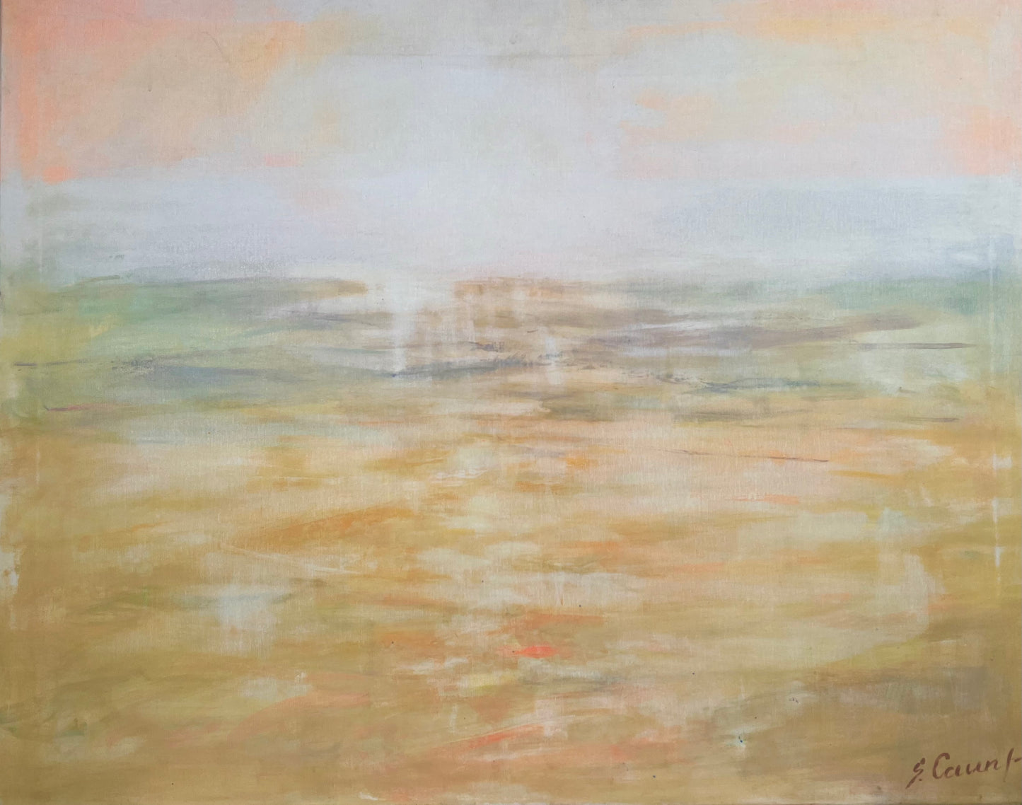 Autors: Sarmīte Caune, "Saulriets", akrils uz audekla, izmērs: 80 x 100 cm, 2024. gads.