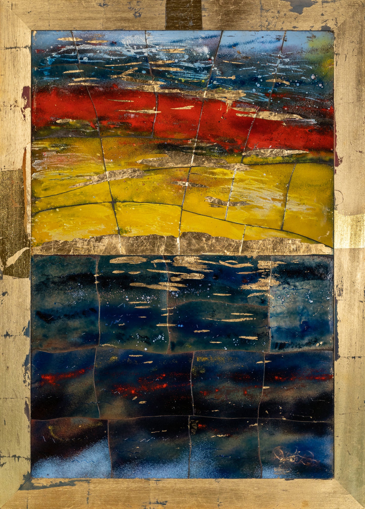 Author: Dina Dubina, "The bright sunset", enamel on copper, size: 100 x 70 cm, year of 2021.