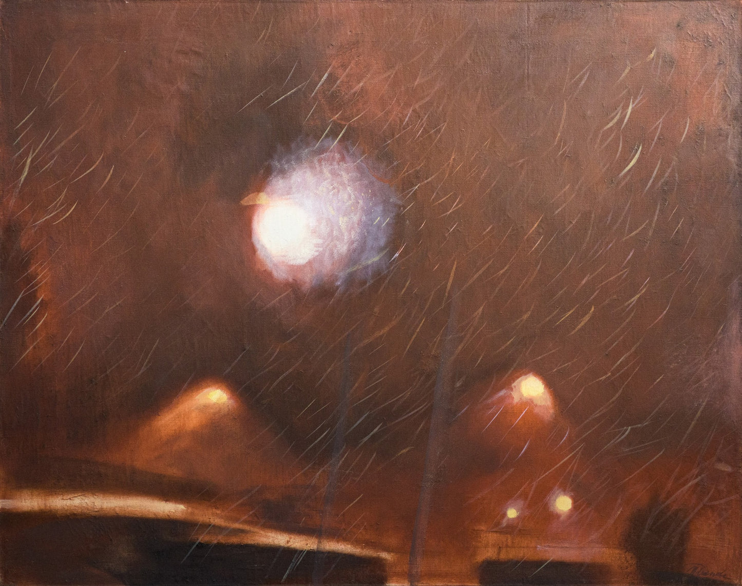Автор: Байба Эланде, "Через окно маршрутки", масло на холсте, размер: 73 х 92 см, 2018 год.