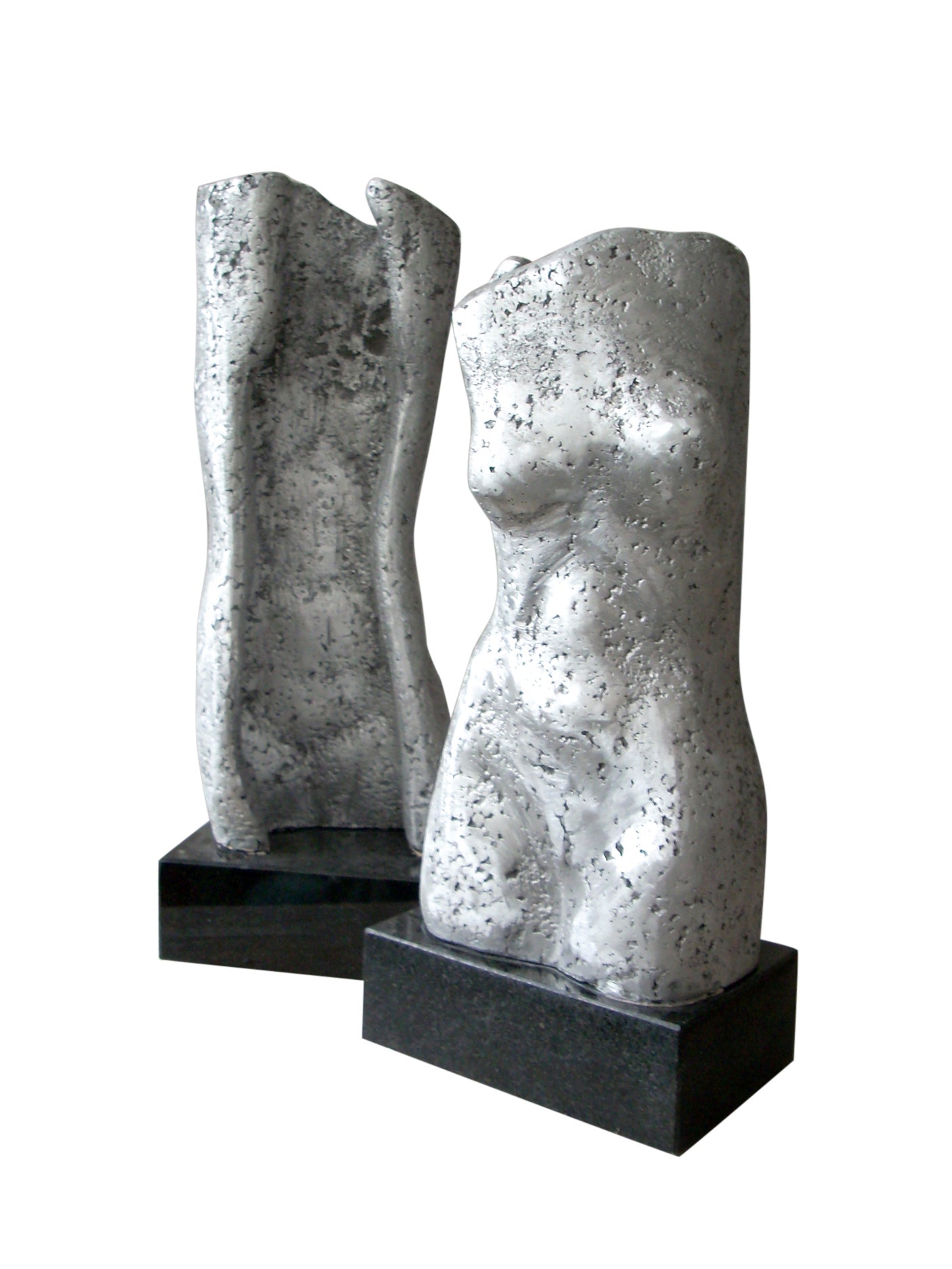 Author: Vija Dzinatre, "Two plus two", aluminum, granite, size: 34 x 15 x 10 cm and 37 x 15 x 10 cm year of 2017.