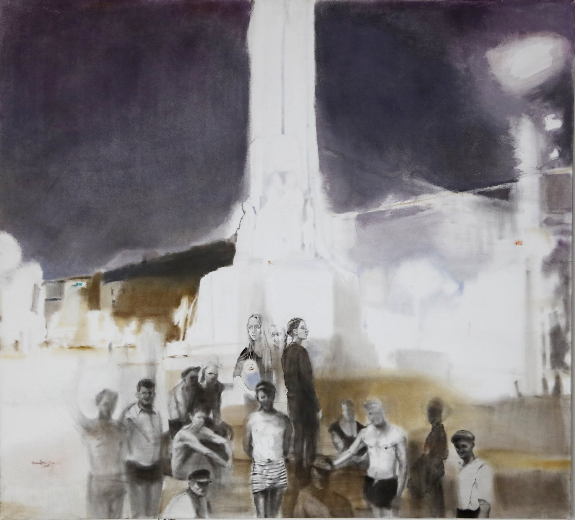 Autors: Neonilla Medvedeva, "Pieminekļa atklāšana", pasteļi un ogle uz papīra, izmērs: 115 x 126 cm, 2015. gads.