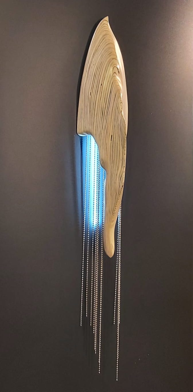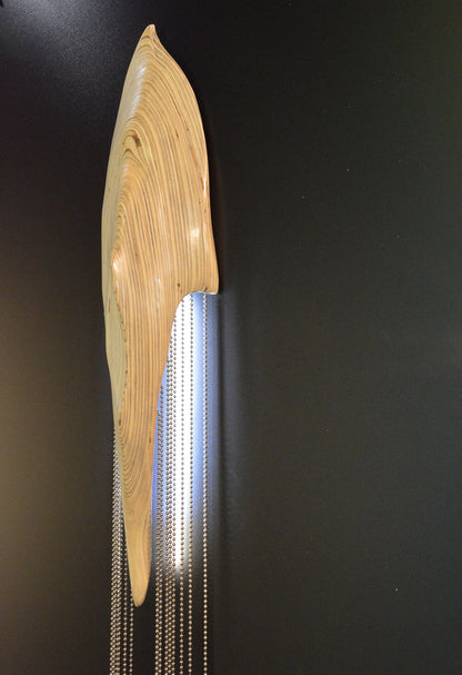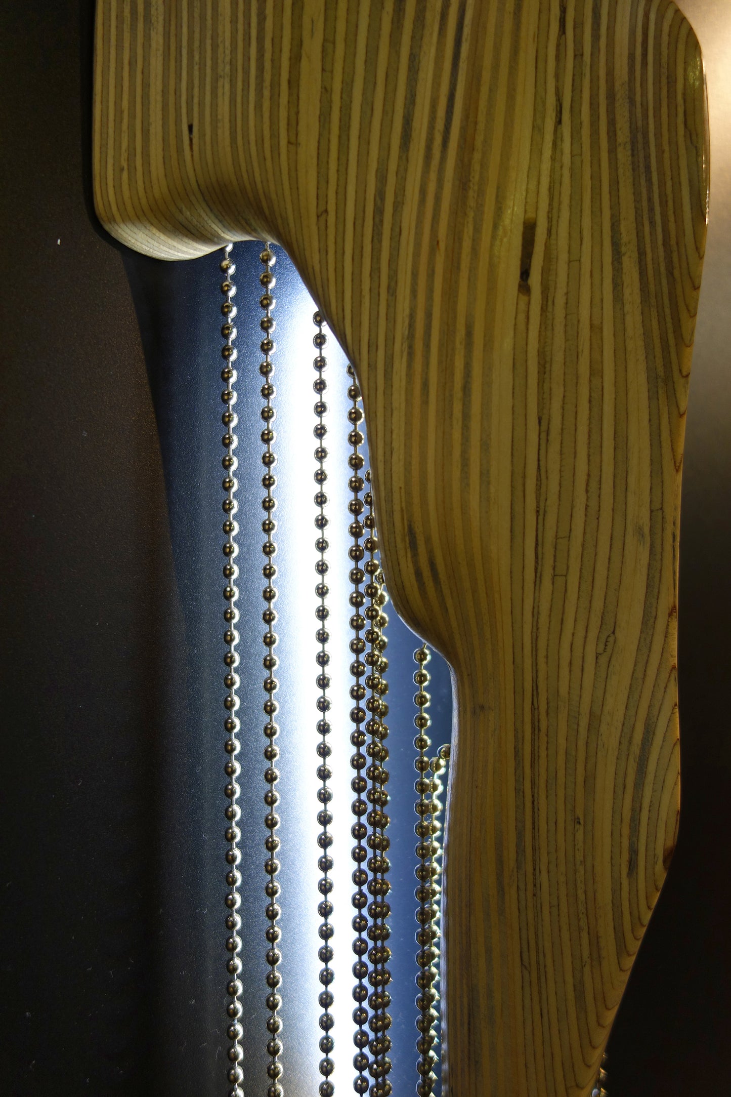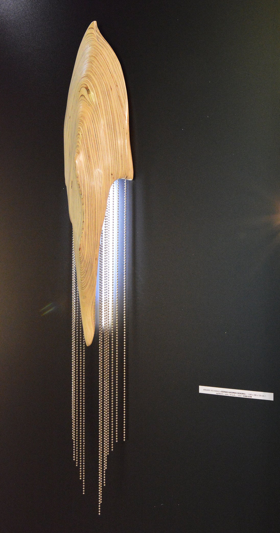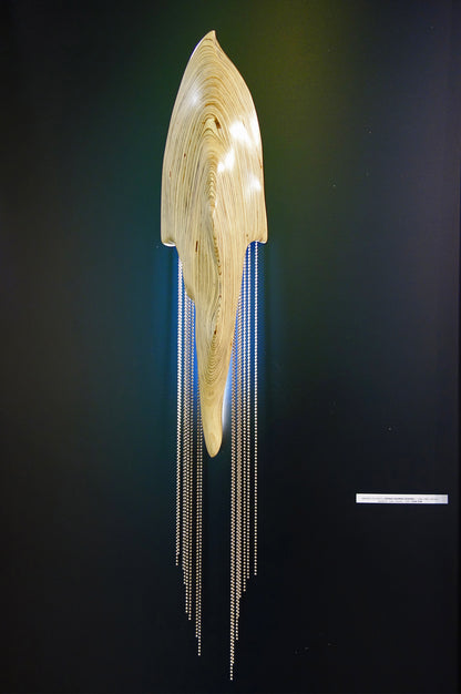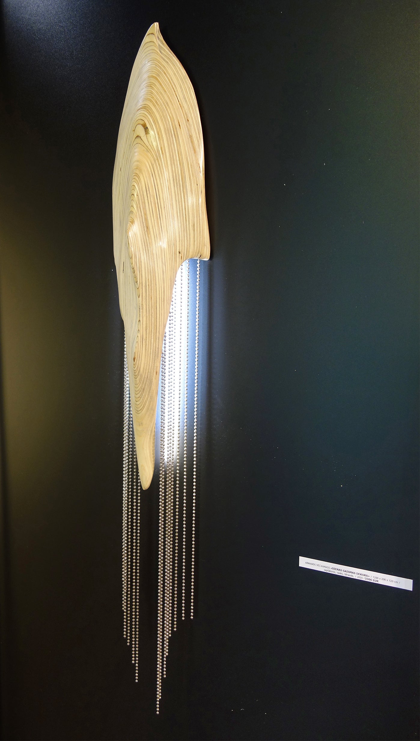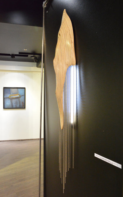 Автор: Армандс Вецванагс, "Настенный светильник", фанера, воск, сталь, размер: 1200 х 200 х 120 мм, год 2020.