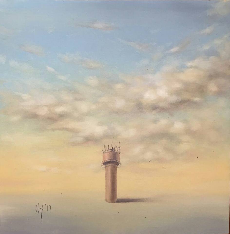 Autors: Ilze Smildziņa, "Gūlbesnes ūdenstornis", eļļa uz audekla, izmērs: 50 x 50 cm, 2017. gads.