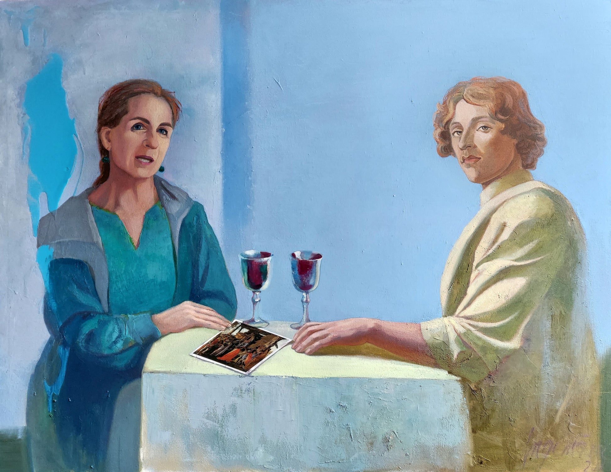 Автор: Ингемарa Тейя, "Разговор с Боттичелли", масло на холсте, размер: 100 х 130 см, 2023 год.