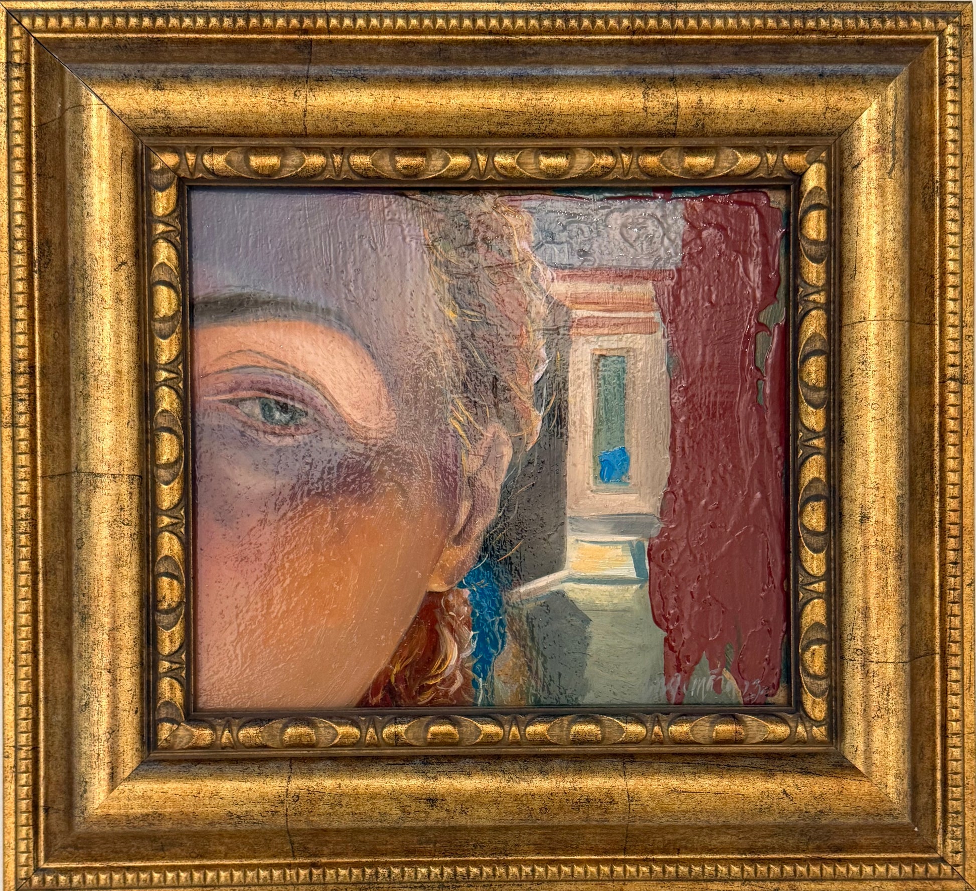 Автор: Ингемарa Тейя, "Интерьер", масло на деревянном шпоне, размер: 20 х 23 см, 2025 год.