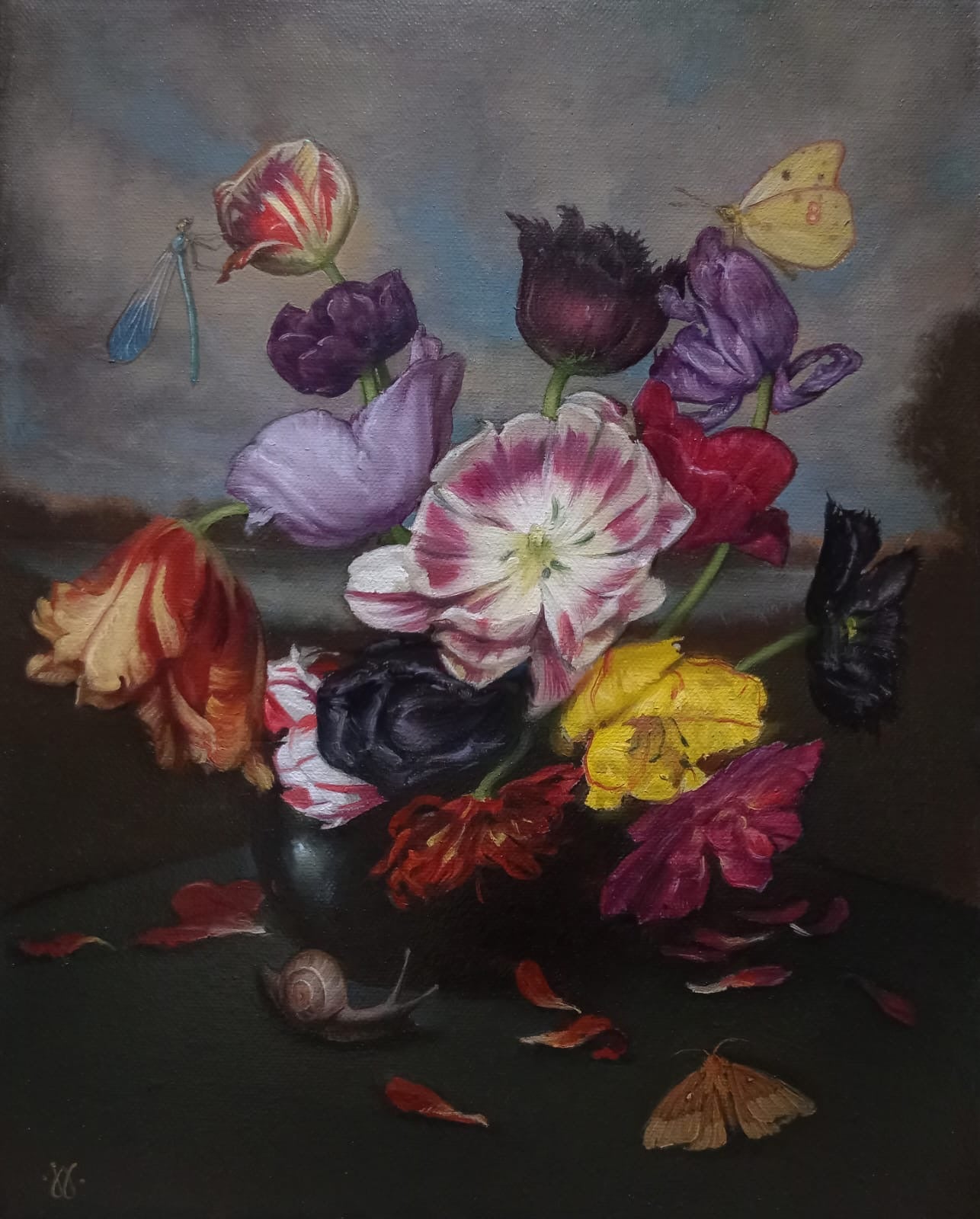 Autors: Adam Till, "Klusā daba", eļļa uz audekla, izmērs: 60 x 35 cm, 2022. gads.